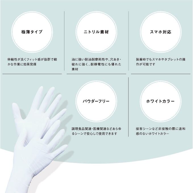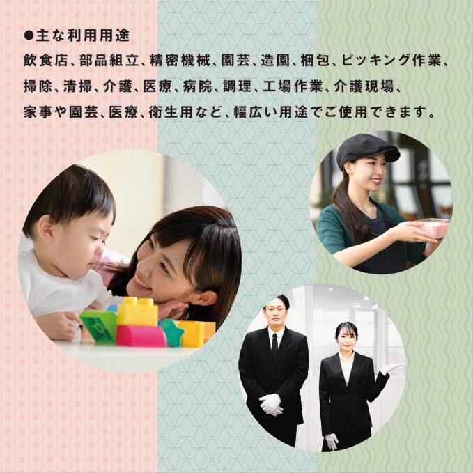 又、伸縮性にも優れ、手にぴったりフィットする極薄仕上げにより、素手で行っている様な感覚でご使用頂けます。